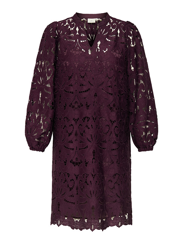 Blondukjólin hevur puff ermar og elastik í rondini. Hevur V-háls og undikjóli fylgir við.