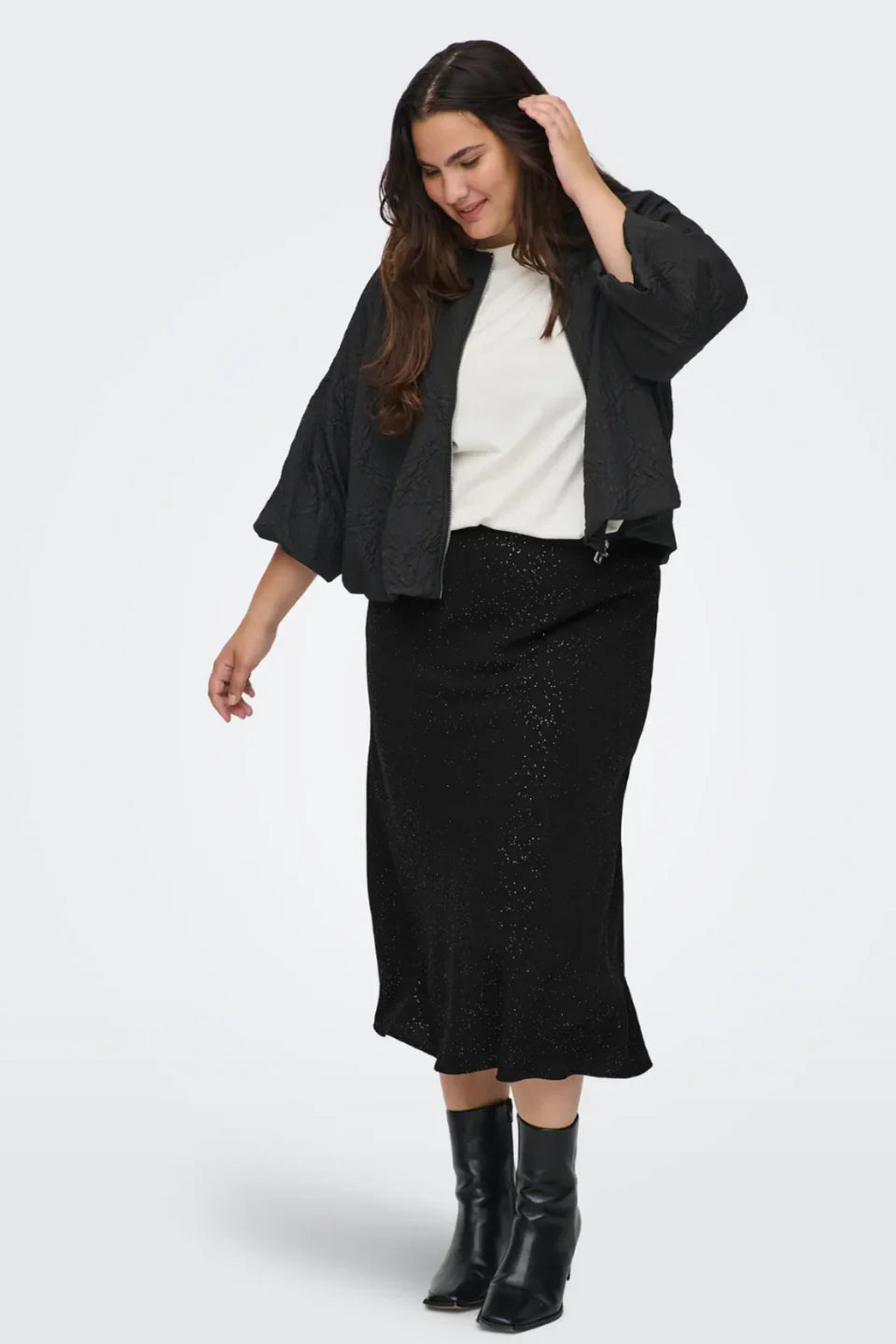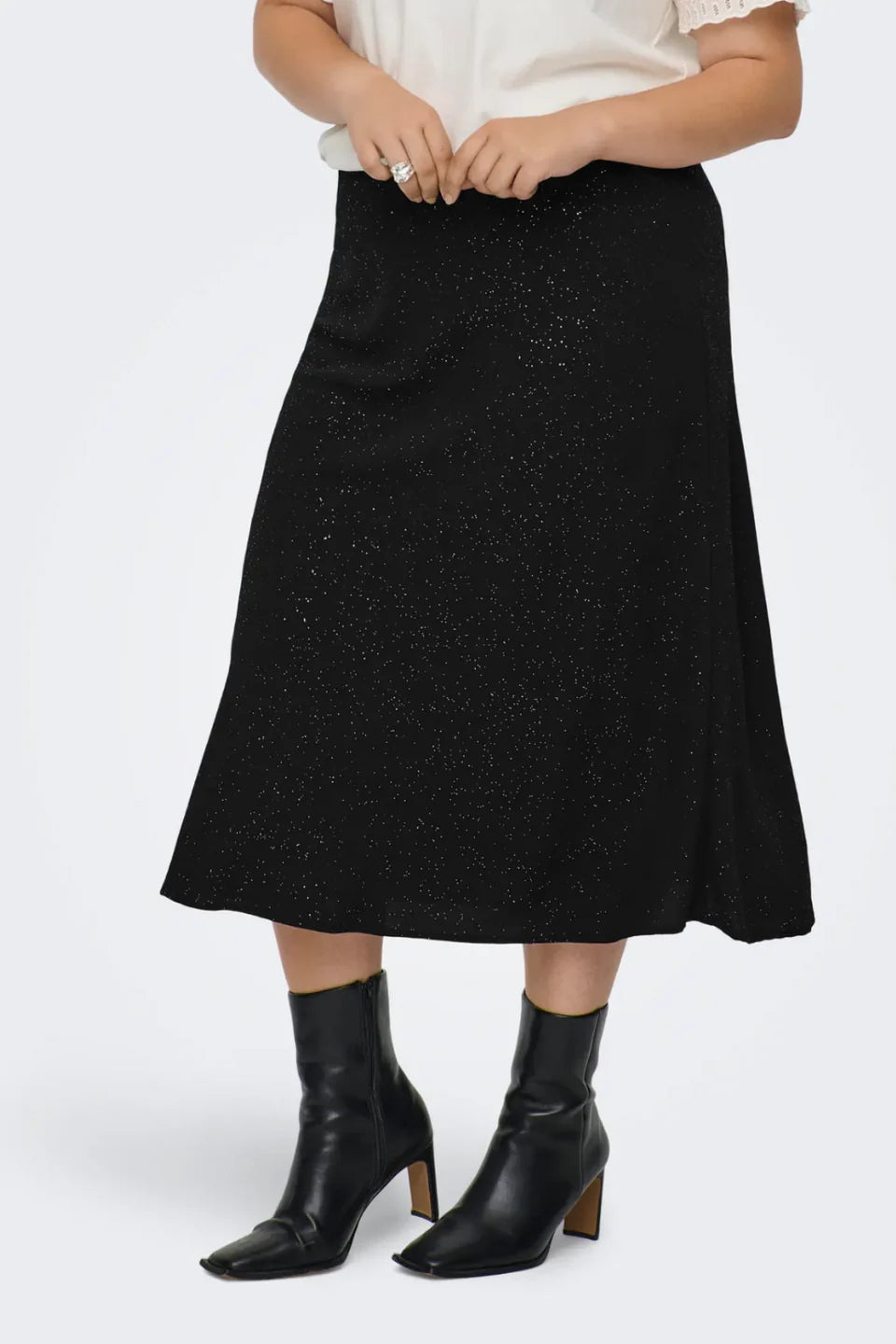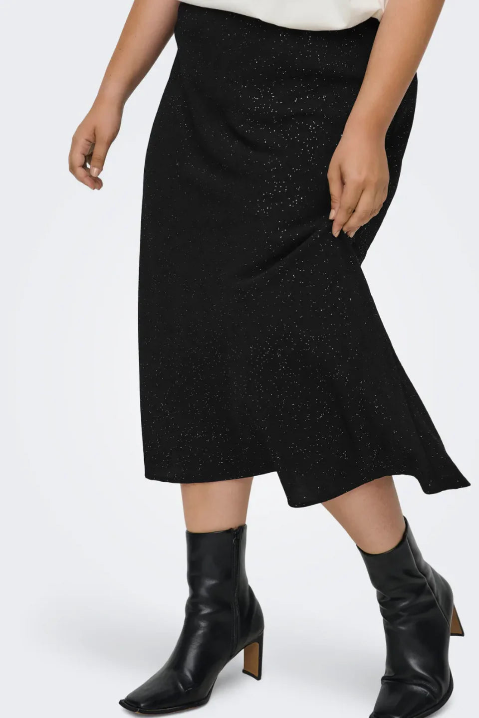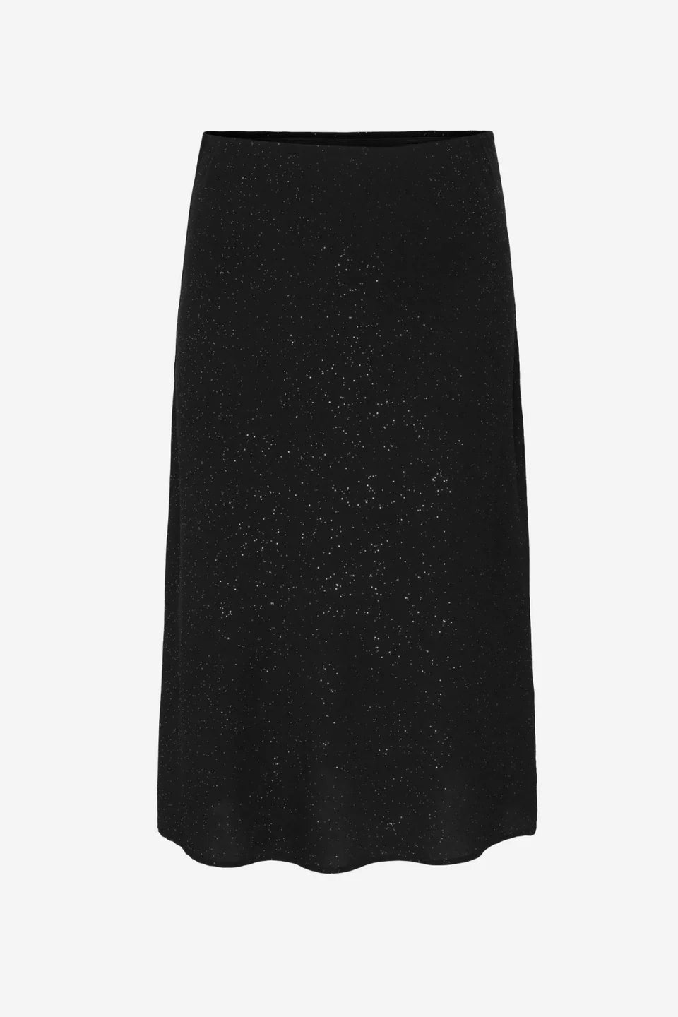 Niðurdeilurin hevur A-snið, glittur í stoffinum og elastik um taljuna.