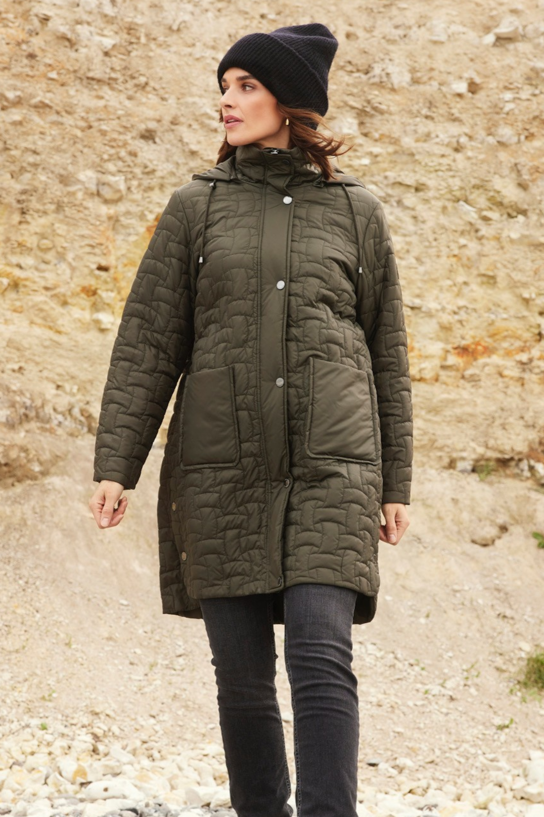 Opgrader din garderobe med denne stilfulde quiltede jakke, designet med en løs pasform for maksimal komfort og bevægelsesfrihed. Jakken når til hofterne (68 cm) og skaber et afslappet, moderne look, som passer perfekt til både hverdag og fritid. Den ensfarvede, plain vævede kvalitet giver jakken et tidløst og elegant udtryk, som nemt kan styles med andre dele af garderoben. Med både krave og aftagelig hætte kan du tilpasse jakken efter vejret og din personlige stil. En praktisk og samtidig trendy jakke, der kombinerer funktionalitet med et klassisk quiltet design.