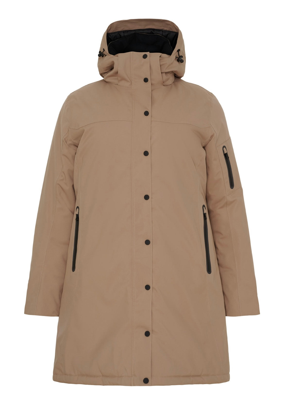 Dejlig varm og funktionel jakke i et åndbart materiale med justerbar og aftagelig hætte. Lukkes med to-vejs lynlås og trykknapper. 3 lommer med lynlås. Jakken er vindtæt og vandafvisende, den kan bruges ned til -20°C og har et ribbet ærmestykke for tættere lukning ved ærmerne. Lynlås forneden i begge sider for ekstra vidde.