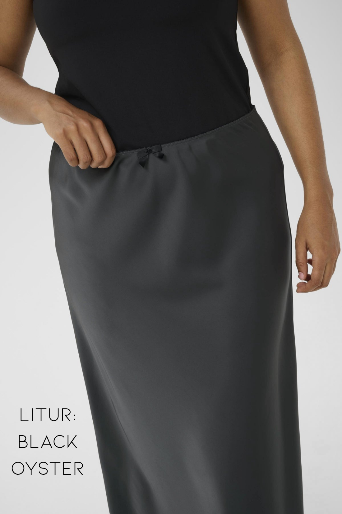 Denne lange nederdel fra Kaffe Curve kombinerer et stilrent udtryk med maksimal komfort. Den er designet med en elastisk talje, så du får en fleksibel og behagelig pasform.