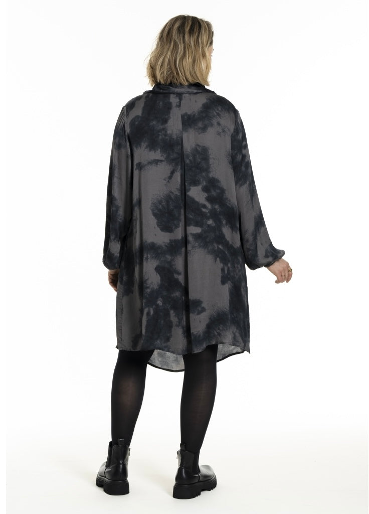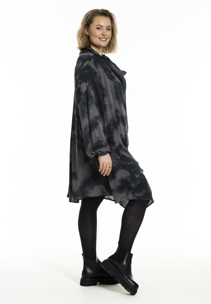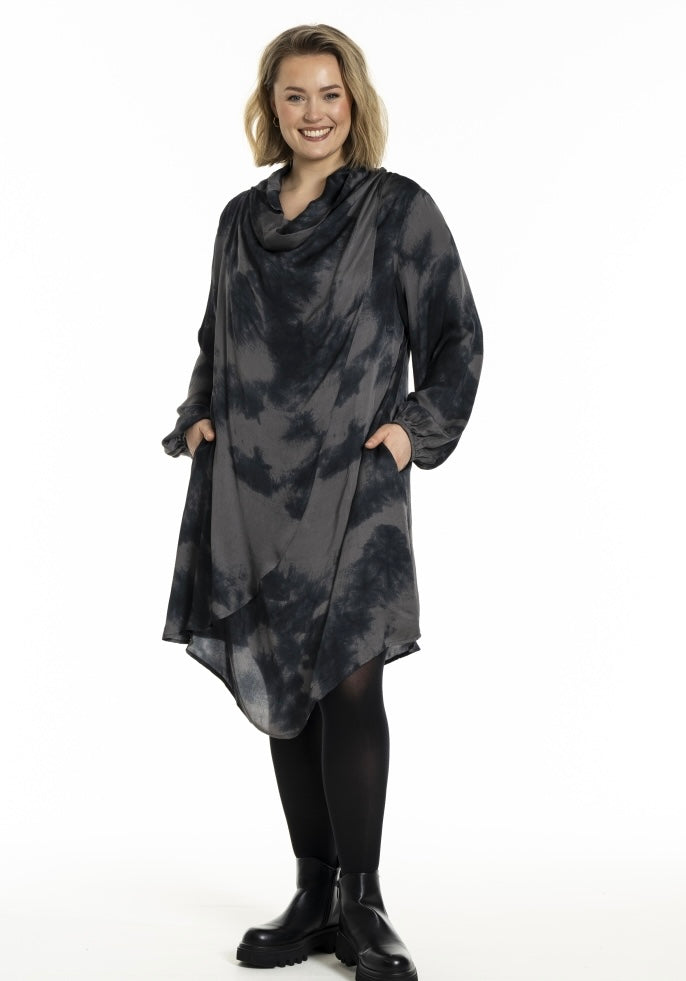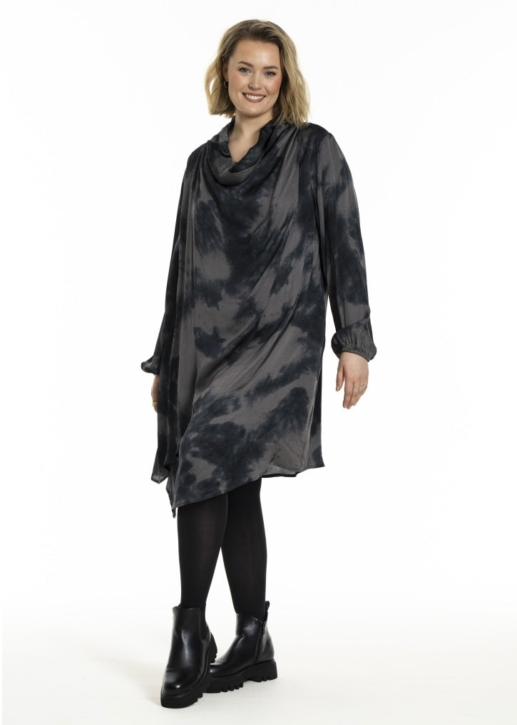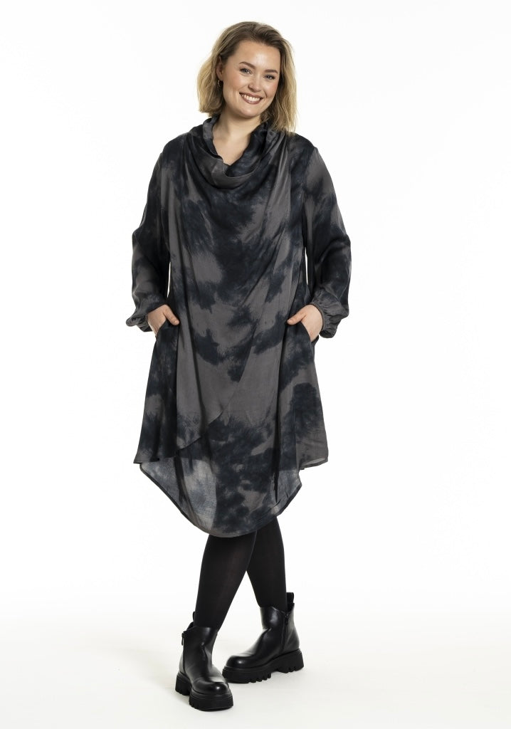 Kjóli v’ Vháls og fallið. Langar ermur og lummar í síðunum. Hevur dubult lag framman.