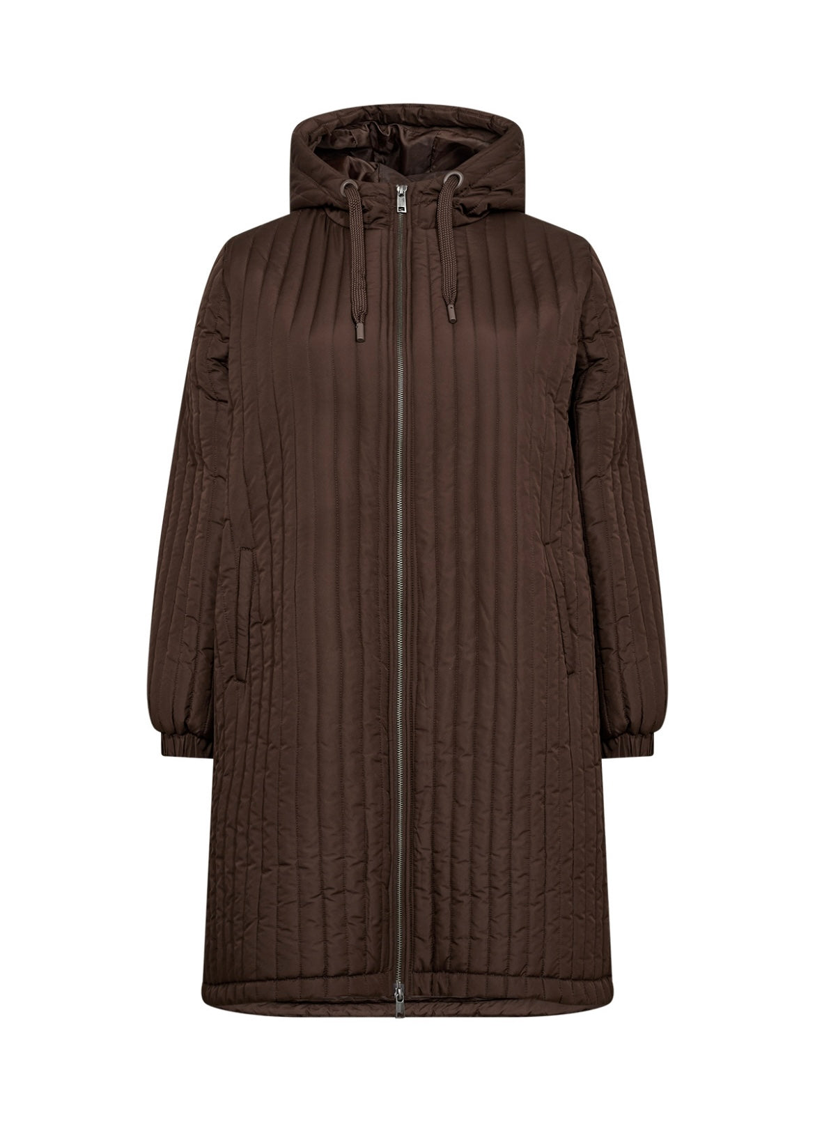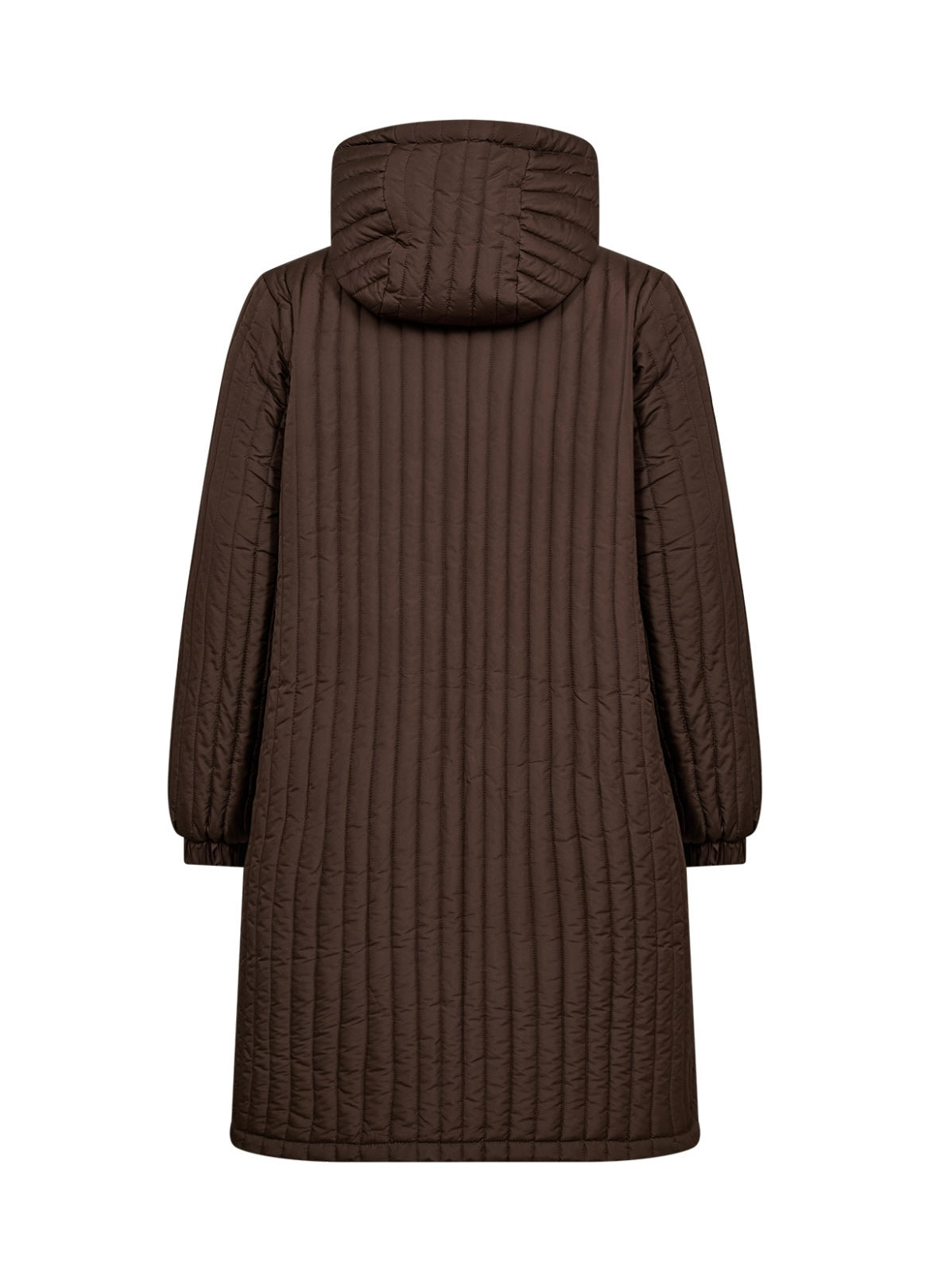 Lættur frakki við hettu. Hevur lýnlás, 2 lummar og tunt fóður.