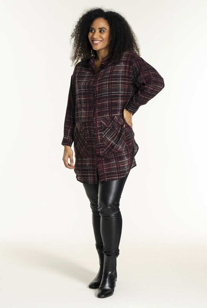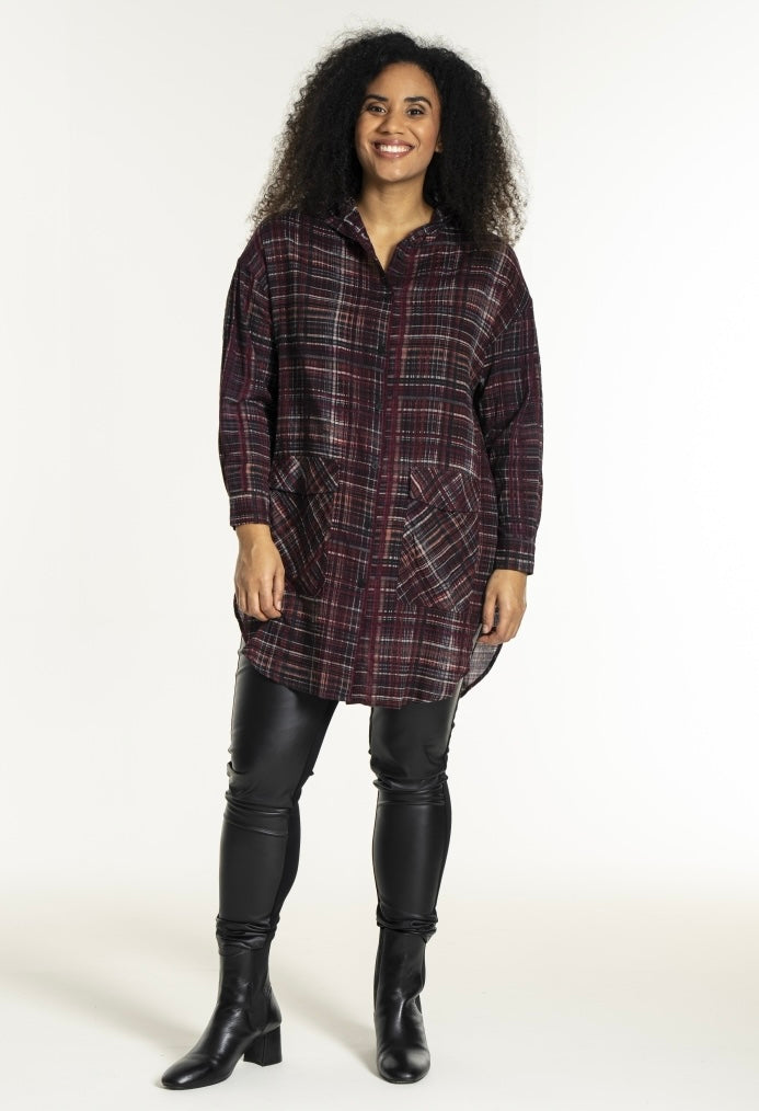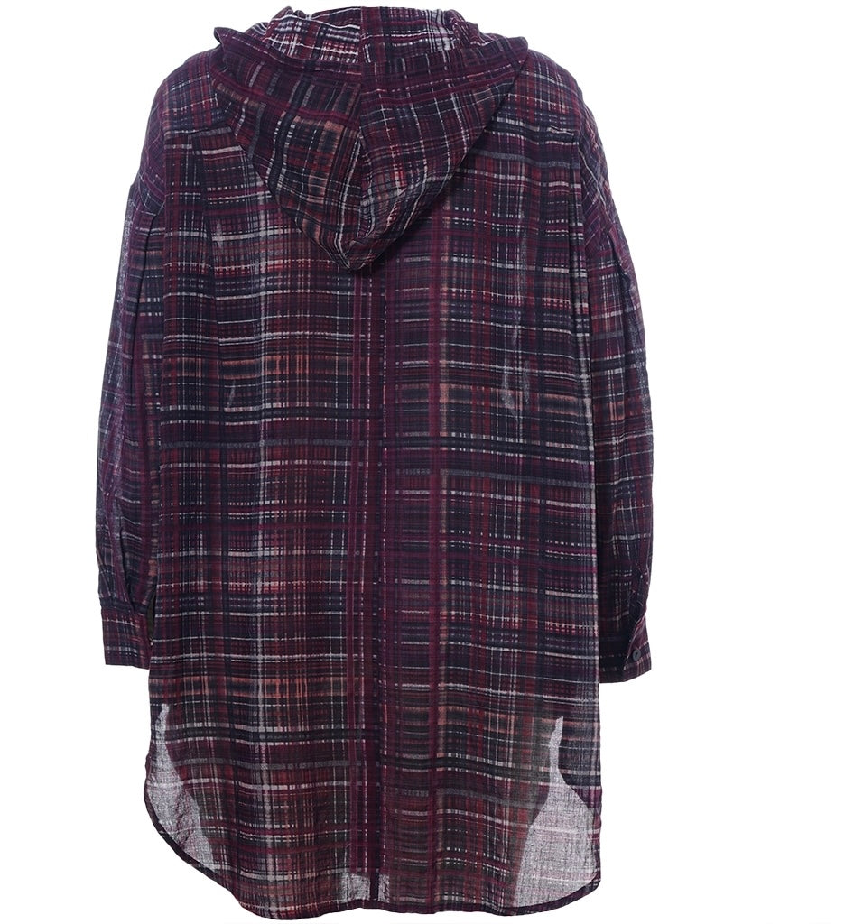Skjúrtu-jakki við longum ermum, lummar framman, gjøgnumknappaður og hevur hettu.Hevur slisd í síðunum. Oversize model.