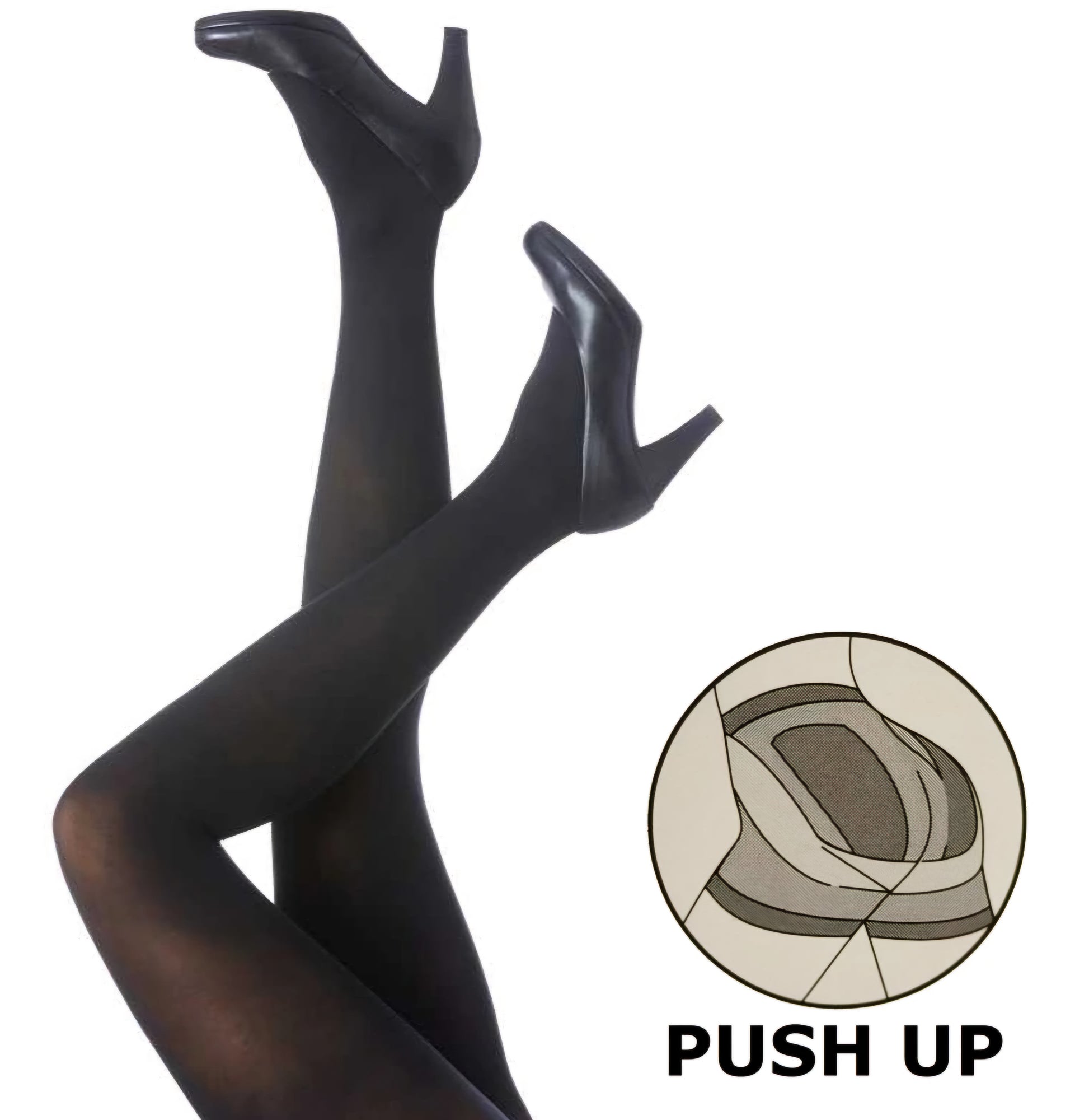 Sorte strømpebukser der giver ekstra hold på mave og mås.